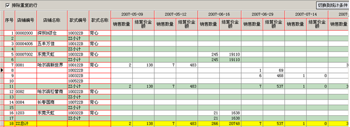 想要查询的报表是款式在每个店铺的销售分布情况,具体要显示的数据项目是:款式编号、